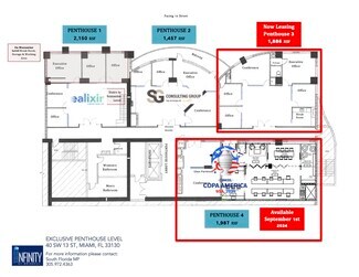 Boutique Office Space for lease at Infinity Office Condo in the heart of Brickell. This thoughtfully designed office suite features glass partitions throughout, creating a modern and open atmosphere while maintaining privacy in key areas. The layout includes two formal private offices, a dedicated workstation area, a welcoming reception area, and a versatile conference space ideal for client meetings and team collaboration. Elegant marble flooring and a sleek drop-down ceiling enhance the overall aesthetic, offering a polished and sophisticated setting for your business. Perfect for professionals seeking a high-end, functional workspace in one of Miami’s most vibrant business districts. NOTE: All furniture included in the lease.