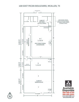 A 10,500 SF office/showroom-warehouse facility with street frontage on Pecan Avenue (a/k/a FM 495). The property has ground level loading access with six (6) overhead doors and clear height of 16'. The building's 1,740 sf of offices can be remodeled for users in need of open concept showroom space. Furthermore the building can be divided for users needing less then the full 10,500 SF space. The owners will consider dividing the front office space for a 6,000 SF and larger sized users. (Bay sizes are 1,500 SF each). Located on the east side of McAllen just west of McColl Road by about 3 blocks (between McColl and 2nd Street/Colonel Rowe).