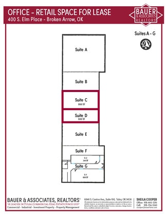 Key Features: - Open Floor Plan: Ideal for various uses, from retail to office setups. - Convenient Access: Quick and easy access to Broken Arrow Expressway (Hwy 51), ensuring smooth traffic flow. - Proximity to the Rose District: Just minutes away from the vibrant and growing Rose District. - High Traffic Area: South Elm Frontage with 23,462 cars per day (Incog 2024) for maximum exposure. Don’t miss out on this excellent opportunity to establish or grow your business in a high-traffic, well-connected location. Schedule a tour today!