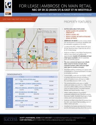 • Within walking distance of populated residential neighborhoods, Westfield schools, Riverview Health, Westfield Washington Public Library and local restaurateurs and retailers.