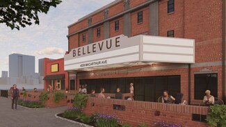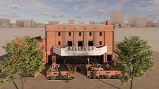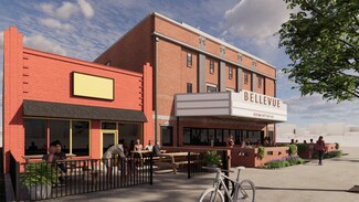 The historic Bellevue Theater redevelopment on MacArthur Avenue. This versatile space offers the potential for a charming patio in front, perfect for attracting foot traffic and enhancing customer experience. With Maven Theory now open, this location benefits from increased visibility and foot traffic.