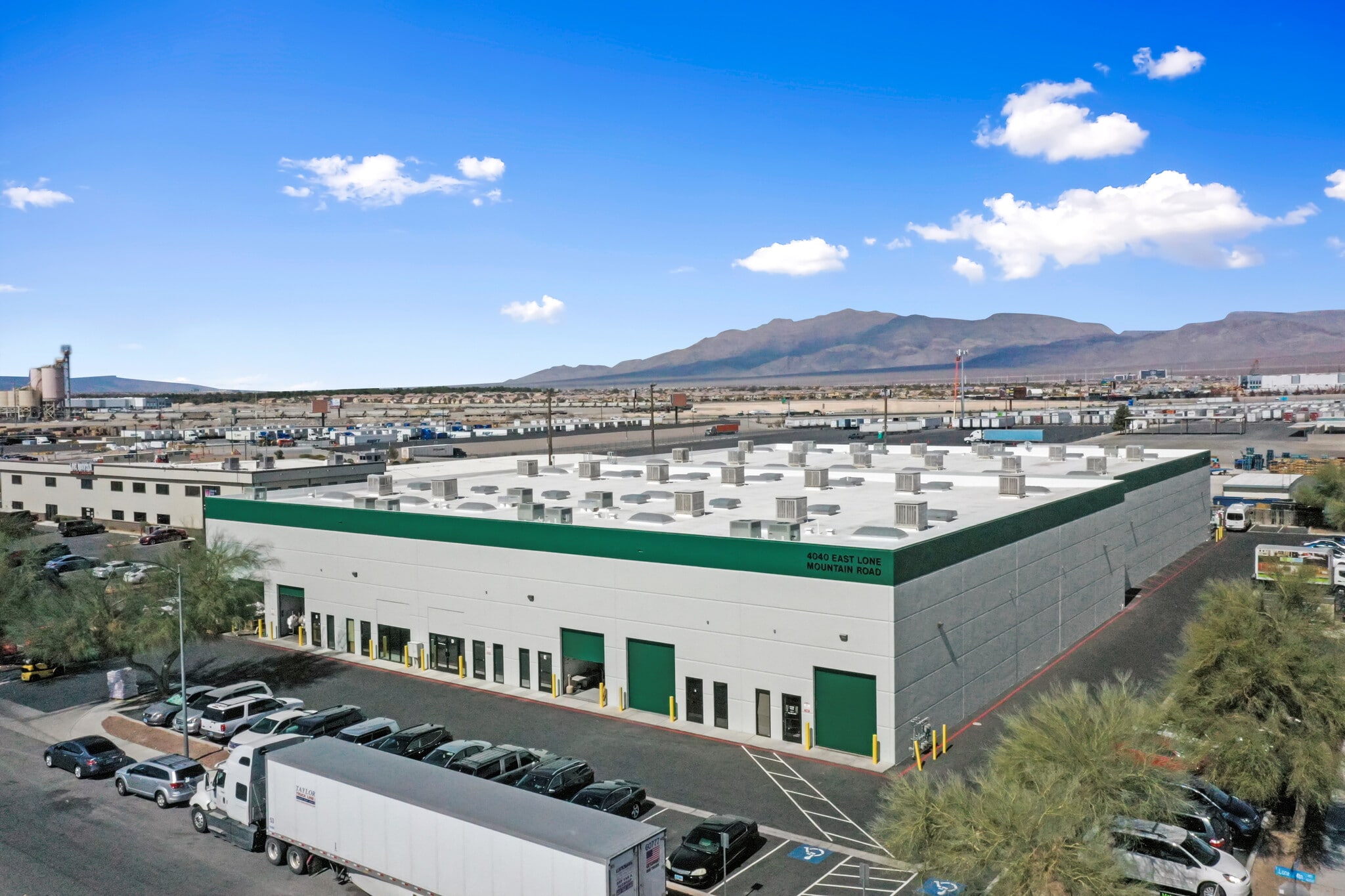 2 Building, 44,800 SF Light Industrial Complex at the corner of Lincoln Road and East Lone Mountain Road. All units are 3,200 SF with 24' Clear Height **All units GL doors only, no hi docks; pre-view via google street view to understand turn radius and loading considerations. Trucks often can be parked on the street and forklifts be run back and forth.