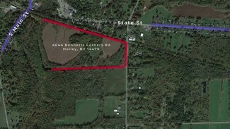 STUNNING! A 59.5 Acre Wilderness OASIS in the middle of all the modern conveniences of the Village of Holley NY. Walk through an Orchard of 100-year-old Sugar Maples. Take in the breathtaking views while hiking the trails of a scenic ravine along Sandy Creek. A peaceful view of a waterfall invites you to sit or stand and experience the timeless beauty and serenity that only nature can provide. Approximately 40% of the land has been cleared; including drives throughout the property. The property has (2) Road Fronts; 69 State ST and 4044 Bennetts Corner Rd. Utilities are available. THE POSSIBILITIES ARE ENDLESS! You will not want to miss this opportunity.