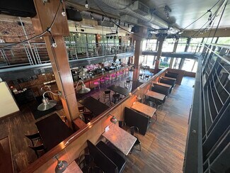 With over 19,000 square feet spanning two floors, including a mezzanine level, this beautiful space is a standout restaurant opportunity. The restaurant features a large bar, two levels of seating, covered outdoor seating, an enclosed brewing area, and an event hall space with a separate bar. The large private parking lot adds exceptional value, especially for a downtown business. Additionally, the lease includes some kitchen equipment, tables/chairs, and brewing equipment, making it an enticing prospect for aspiring restaurateurs. This unique offering is a rare find in downtown Fayetteville.