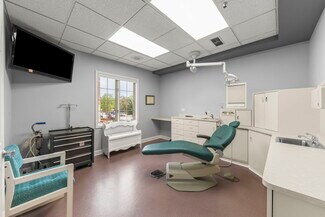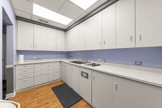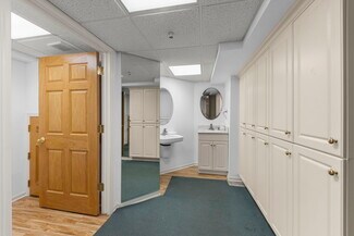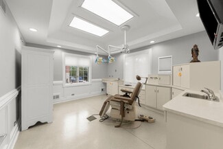 The space is thoughtfully designed across three levels: a private doctor’s office on the top floor, a reception area with multiple exam rooms on the main level, and a lower level featuring a break area, locker rooms, and dedicated private parking. In addition to two private garage parking spaces, the private lot consists of nine spaces, including one ADA accessible space. The location benefits from a vibrant mix of retail, dining, and hospitality amenities all within walking distance.