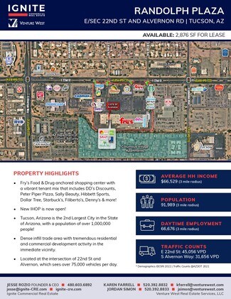 Fry's Food & Drug anchored shopping center with a vibrant mix that includes DD's Discounts, Peter Piper Pizza, Sally Beauty, Denny's & more including a future national coffee user! This Center is well managed with great tenants and has been recently renovated!