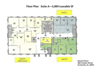 Building located at the corner of Franklin Street and Williams Avenue in the heart of downtown Huntsville. Walking distance to other businesses, restaurants and entertainments.