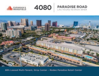 Cushman and Wakefield, Inc., as exclusive advisor, is pleased to present for acquisition the fee simple interest in the Rodeo Paradise retail center (the “Property”). This ±17,711sf multi-tenant property is strategically located one mile east of the world-renowned Las Vegas “strip” offering 140 feet of frontage on Paradise Road where traffic counts are in excess of 32,500 vpd.