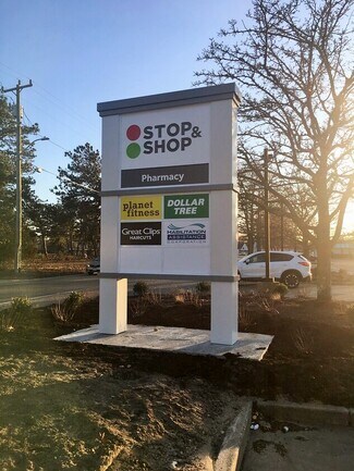 Long Pond Drive Plaza, a popular neighborhood shopping center anchored by Stop & Shop Supermarket with co-tenants including Planet Fitness, Dollar Tree and Great Clips, has one available storefront for lease . Another space will be coming available in 2021. This South Yarmouth plaza enjoys easy access from Route 28, one of Cape Cod’s major traffic routes, and offers attractive landscaping with a large parking field. New pylon sign at entry.