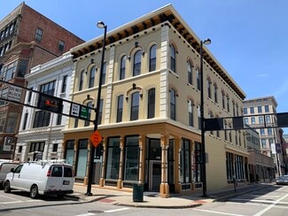 The Derby on Plum provides a statement office or retail location in the heart of the central business district of downtown Cincinnati. Originally designed by famed architect, Samuel Hannaford in 1863, and serving multiple uses for former banks and professional architectural offices over the years, The Derby on Plum has recently undergone a transformative redevelopment into a beautiful mixed-use adaptation of one of downtown's quintessential historic buildings. The Derby Building provides an iconic address with history, character, abundant natural light and great exposure & visibility, steps from the Cincinnati Convention Center and The Banks! For sale or lease - over 7,100 SF on two levels with shared courtyard amenity & grade level entry at the W 4th & Plum intersection. Numerous parking and walkable amenities nearby.