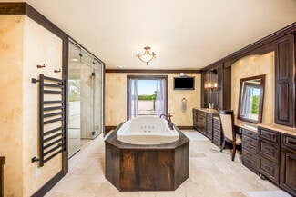 Residence offers a stunning 9,600 sq. ft. estate on 5 scenic acres with Fossil Lake frontage. This architectural gem features modern upgrades, 4 bedrooms, and approved business permits for a B&B. Experience tranquility and luxury, perfect for private living or a thriving retreat destination.