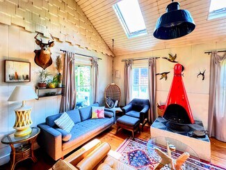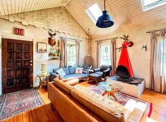 This income juggernaut is only 2 miles from Hunter Mtn Ski Resort and is being offered turn-key, fully furnished, booked out and ready to go... Stoney Clove consists of Clove House (7 BR), Clove Lodge (5BR) and Clove Cabin (2BR) sitting on 425' of the Southern bank of the Schoharie Creek. The estate personifies Mid-Century meets Catskill Classics dcor, with every room thoughtfully featuring an eclectic mix of Article, Joybird and Authentic Rustic Gold furnishings.Fire Pits, Stone Patios, Wildflowers & Hammocks dot the property making for an endless escape to tie up a tube or swim in the creek, hit the slopes or hike the trails from this private oasis in the mountains. Tucked away on a publicly maintained private road, sitting just between the creek and the entrance to a new multi-use trail head leading into the Catskills Wilderness. Complete privacy surrounded by Schoharie Creek and beautiful Mountain views. Host large dinners at the main house while having game night by the mod fireplace in the lodge. Events have been welcomed by the large flat open field that is ideal for morning yoga, tented functions and perfect for an intimate wedding ceremony & reception...https://www.airbnb.com/rooms/40489345