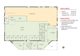 AVAILABLE - Office: ±8,100 SF - Warehouse: ±3,425 SF - Building Total: ±11,525 SF - Land: ±1.0 Acres SALE PRICE - $2,595,000 ($225.00/SF) LEASE RATE - $16.50/SF + NNN HIGHLIGHTS - Fenced and gated parking/lay down area - Grade-level, roll-up door - 14’ ceiling heights - 4:1,000 parking ratio - Monument sign - Completely remodeled in 2020 with new roof & parking lot