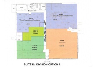 OFFICE SPACE FOR LEASE 736 SF – 4,633 SF SUITE D: 4,633 SF of raw space in a single story masonry office building can be leased as a single unit or divided into suites ranging in sizes. See attached drawings for possible configurations. Priced at $18 psf gross which includes CAM, Taxes and Utilities. Common multi-stall bathrooms, kitchen/break area (with outside patio), and ample parking. Two long-term co-tenants include McHenry Dialysis and Center for Therapeutic Services & Psychodiagnostics. Location is ideal for a medical and service professional with its proximity to Northwestern Hospital.