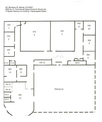 Great Commercial space at 421 Monterey St. Salinas, CA 93901. This commercial space zoned for mixed use and is a 9,380-square foot space with 16 space parking lot 1 of which is reserved for handicapped. Located in an area with high traffic count, easy access to highway 101, visitor services, banking and other retail businesses. Lots of potential for a great business. For more information or to submit an application please visit https://www.calpropertymanagement.com/ Current zoning CO previous zoning MX