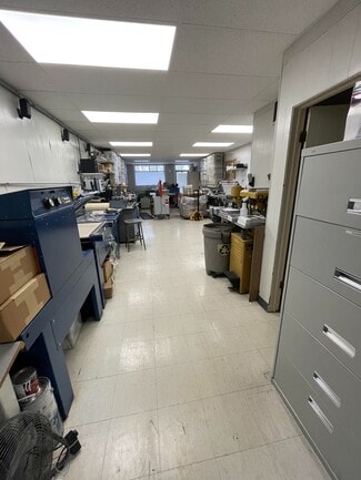 • Warehouse has drop ceiling with LED lighting and epoxy floors