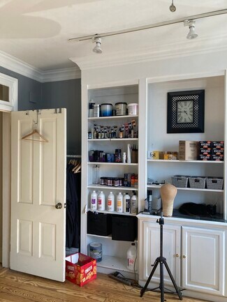 Second floor of beautiful 1880 townhouse on busy South Washington Street in Old Town. High Ceilings, detailed molding, original heart-pine floor, private bath with shower. Three rooms, including large front room with built-in cabinets and display shelves and tall French windows that let natural light flood in. Currently used as a hair salon. Space is conditioned with high-efficiency mini-split heat pump/air conditioning system, with new boiler back up for extreme cold. Nail salon and Vietnamese tea shop next door with a busy CVS on the corner and a new bakery and cafe across the street. One off-street parking space included and free street parking on South Washington and neighboring streets. Upstairs and downstairs tenants divide utilities equally, to include gas, electricity, water, sewer and trash.