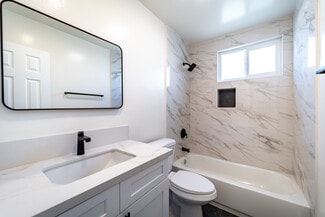 4227 49th Street is an 8-unit complex in City Heights with plenty of parking. The 5,628 square foot building built in 1969 is situated on a 6,907 square foot lot. There are three 2 Bedroom / 1.75 Bathroom units and five 1 Bedroom / 1 Bathroom units. All units have been completely remodeled in 2025. There was a new roof installed as well as stucco repair, exterior repaint, new security doors, and water proofing of the balconies. All unit interiors feature new canned lighting, window coverings and vinyl plank flooring with new baseboards. All units have new appliances and electric wall heaters powered by new sub panels. Plumbing was replaced with copper and ABS as needed. The kitchens and bathrooms feature new cabinets, fixtures, hardware, and quartz countertops. There is an onsite laundry facility that has been expanded and has new machines. The property is located in City Heights, close to the transit and shopping off El Cajon Blvd.