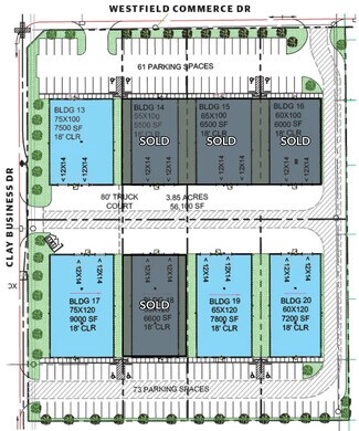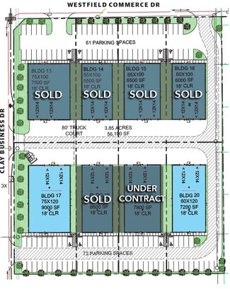 Clay Commerce Park is a master-planned, deed-restricted park, and consists of 11 new warehouses with tilt-wall construction in Katy, Texas, near the intersection of Grand Parkway and Interstate 10. Clay Commerce Park is outside the 100- and 500-year floodplains, and the property did not flood during Harvey. Buildings 1 through 8 are dock-high warehouses in shell condition, ranging from 13,500 to 24,000 square feet, each situated on 1- to 1.6-acre lots. The buildings feature a 120-foot truck court, a ramp with a 12-foot by 14-foot drive-in door, and 9-foot by 10-foot loading docks. The dock-high warehouses boast 24-foot clear heights, ESFR sprinkler systems, and 400-amp electrical service. Buildings 10 through 12 are grade-level warehouses in shell condition on quarter- to half-acre lots. Each grade-level warehouse features 2 drive-in doors, 18-foot clear height, and 200-amp power. Clay Commerce Park offers tenants excellent access to the surrounding transit and distribution channels. Grand Parkway is a 5-minute drive and leads to Interstate 10 in 8 minutes. Tencon Industries Rail Lines is a 40-minute drive, the Port of Houston is 50 minutes, the Port of Galveston in an hour and a half, and Mexico's border can be reached in just over 5 hours. Air transport options are abundant with a 15-minute drive to the local West Houston Airport, 30 minutes to Sugar Land Regional Airport, and William P Hobby Airport and George Bush Intercontinental Airport are under an hour. Known for beautiful weather and classic Texas charm, Katy is the perfect place to call home where employees can benefit from easy access to the city while enjoying the neighborliness of a quiet community. As a small suburban outpost about thirty minutes due west of downtown Houston, it's a popular area for commuters, and abundant unused acreage allows for the development of new business and industrial parks. In addition, Katy Mills is just a 15-minute drive, offering quick-eats, restaurants, shopping, entertainment, and hospitality. Clay Commerce Park offers unmatched transportation access in brand new, state-of-the-art facilities.