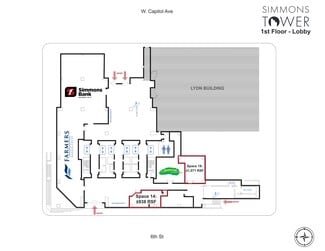 Simmons Tower provides Class A space and a diverse tenant mix in the tallest building in Little Rock. The building has luxurious office suites that are ready for move-in, as well as multiple floors that can be leased together for a potential headquarters location. Owner will offer competitive rental rates and provide funds to assist with the build-out of each customizable space. Located in the financial quarter, tenants are surrounded by a dense professional office community, multiple hotels, and retail options. The building is within walking distance of the Creative Corridor, the River Market District, and the Macarthur Park Historic District. There is also easy access to major thoroughfares just 5 blocks from I-630, and 10 blocks from I-30 in Downtown Little Rock. The building offers tenants a shared conference facility, on-site management, restaurant options, and a fitness center. Employees can take advantage of the personal services on-site like access to a bank, a restaurant, and convenient indoor bike racks. Parking garage is attached to the building with a sky bridge, offering additional ease of access to the property.
