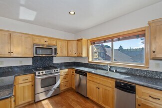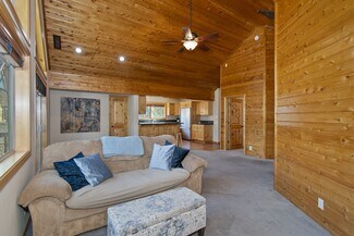 NEWER COMMERCIAL/ RESIDENTIAL PROPERTY IN A GREAT LOCATION. Built in 2006, this immaculatemixed-use property features a 987 sq ft two-bedroom, one-bath residence above 1,200 sq ft ofcommercial retail space. The residence boasts a cozy, woodsy interior with high vaulted ceilings,granite countertops and stainless steel appliances, including a built-in fridge. It also includes abreakfast bar, dining area, wood laminate flooring, central heating, a stacked washer/dryer, andceiling fans for cooling. The lower space features a mostly open floor plan, including one bathroom anda small office. There is ample off-street parking accessed from Moonridge Road. All this sits on a6,000-square-foot lot that extends from the street to the alley and is situated in the highly sought-after Moonridge Corridor. The commercial parking is in front, and the residential parking is in the rear.If classes are being held, it's best to park and show from the alley.