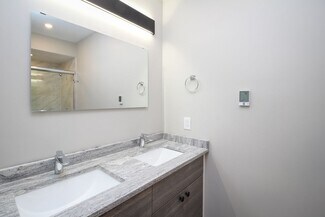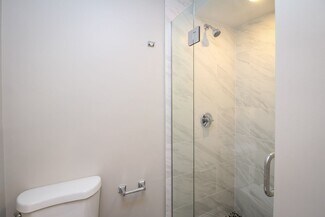 • Bathrooms boast heated floors and contemporary tile work.