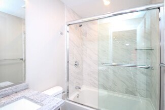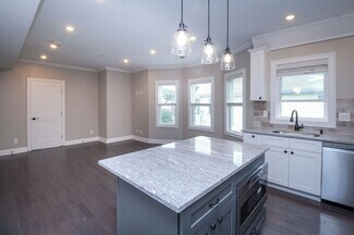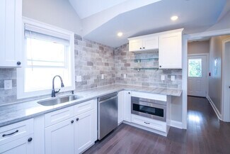 • High-end kitchens equipped with quartz countertops, white shaker cabinets, and stainless steel appliances.