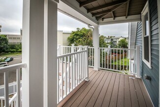 • Outdoor amenities: private backyard with fire pit, balconies, and a shared yard space.