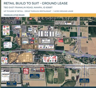 Ground lease, build to suit opportunity available west of the new Highway 16 Interchange in Nampa. Potential uses include multi-tenant or free-standing retail, drive through restaurant, office, or other professional service provider. Site amenities include busy Franklin Road frontage, existing full-turn access, prominent signage areas, less than half a mile of Interstate 84, close to Amazon & Lactalis - two major employers, and surrounded by new and existing developments. Traffic generators include College of Western Idaho, WinCo Foods, Walmart, Saint Alphonsus, and several other local, regional and national business, hotels, retailers and restaurants. East of the Ford Idaho Center - a 25,279 seat event and concert venue.
