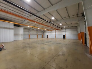 13,636 square-foot facility ideal for service uses, RV repair, etc. Main production 80’ x 160’ clear span with 4 – 14’ grade level doors. Two 2-ton crane rails with hoists. 20’ tall. Paint booth. Great open production areas with good clearances. Large, paved parking area.