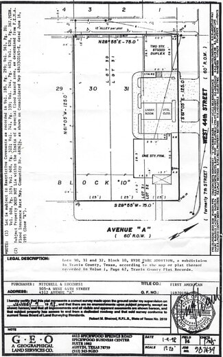 4312 AVENUE A is zoned MF-3-NCCD-ETOD-DBETOD-NP (Multifamily Residence, Medium Density-Neighborhood Conservation Combining District-Equitable Transit Oriented Development-Density Bonus ETOD-Neighborhood Plan). The recent rezoning of this property presents an extraordinary opportunity to redevelop the site into a one-of-a kind luxury residential project unlike anything else in the neighborhood. The subject property is a 75’ x 125’ corner lot with alley access located at the intersection of West 44th and Avenue A, just one block from the planned light rail station to be built at the corner of 45th Street and Guadalupe.A recent redevelopment feasibility study conducted by Land Answers, Inc. indicates that this multi-family building site can support a five-story building with a height of 70 feet, comprising 20 residential units averaging 1,156 square feet each, and a total floor area of 25,780 square feet, plus 11 covered parking spaces. The zoning regulations for this 9,370 square foot corner lot permit up to 60% impervious cover—approximately 5,625 square feet—and a maximum building footprint of 5,156 square feet. According to Development Planning Consultant, Jim Wittliff, the proposed project is well-suited for the newly approved building code, which allows construction of single-staircase buildings up to five stories in height. A copy of Land Answers, Inc. report is available upon request.
