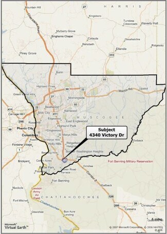 The property located at 4340 Victory Drive consists of 69.68 beautiful acres highly visible from its 1,180 feet of frontage road. Located on the property is a 150,985 SF one-story (plus a basement) brick school building. The original building was constructed in 1978. The property is zoned Single Family Residential, and is desirable for residential and/or commercial development. Victory Drive has an average daily traffic count of 25,000 to 30,000, is the major commercial thoroughfare to Ft. Benning, and located within 1 mile from Interstate 185 with daily traffic count of 70,000+. Victory Drive is a three-lane, two-way, asphalt paved thoroughfare, and has a 60-foot right-of-way with concrete curbing. The beautiful landscape is rolling with ample drainage. The property is not located in a flood zone. There are no known environmental or waste hazards affecting the property. The school moved to a new 200,000 square-foot building in the area with a new athletic complex shared by all the Muscogee County District schools.