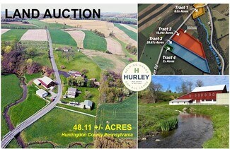 The property features a 2-story farmhouse, large bank barn, 30x40 shop, 24x36 newer detached garage, and Warriors Mark Run flows through the property! The farmhouse includes 3 bedrooms, 1.5 bathrooms, living room, dining room, family room, sunroom, foyer, covered porch, attic, and basement. Located in a beautiful area and also convenient to local towns and roadways. Approx. 20 miles to State College and Huntingdon, and 26 miles to Snyders Run boat launch at Raystown Lake, 7 miles to Tyrone. This property will be offered as a multi-parcel auction meaning multiple tracts will be available for sale. The property will be offered in individual tracts, combinations of tracts, and as a whole. Tract 1: 6.30± Acres with a farmhouse, barn, shop, detached garage, Warriors Mark flows through. Tract 2: 18.94± Acres w/ frontage on Burket Rd, Perc approved Tract 3: 20.87± Acres w/ frontage on Burket Rd, Perc approved Tract 4: 2± Acres w/ frontage on Burket Rd, Perc approved Taxes will be reassessed if the tracts sell as individual tracts or as combinations. This property will be offered at auction on Friday, July 11, 2025 @ 3:00pm. The List price in no way represents a minimum, starting, or acceptable bid.