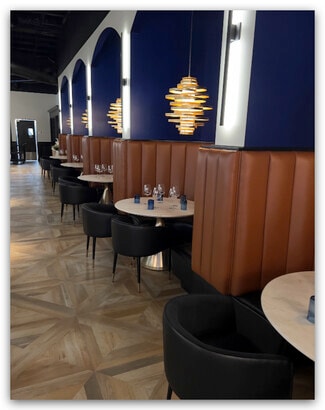 The kitchen is equipped with high-quality equipment, including the Infierno wood grill by Grillworks and a wood/gas pizza oven by Marra Forni, making it ideal for preparing a wide range of culinary delights. Additionally, the lounge features an oversized baby grand piano with self-player capabilities, enhancing the overall dining experience.