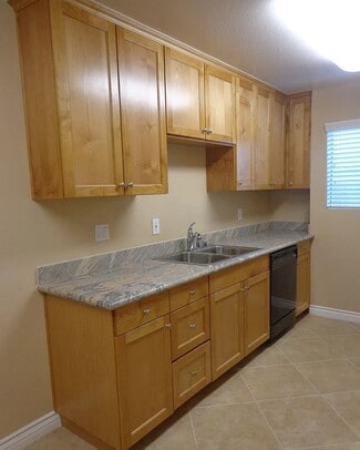 Inside each residence, bright, open living spaces feature stunning flooring and designer paint, while updated kitchens showcase granite countertops, warm wood cabinetry, and matching tile flooring. Bedrooms are generously sized with contemporary light fixtures and faux wood blinds, and hallways offer ample storage for a clutter-free home. Residents also enjoy onsite laundry, a full suite of appliances, and air conditioning.