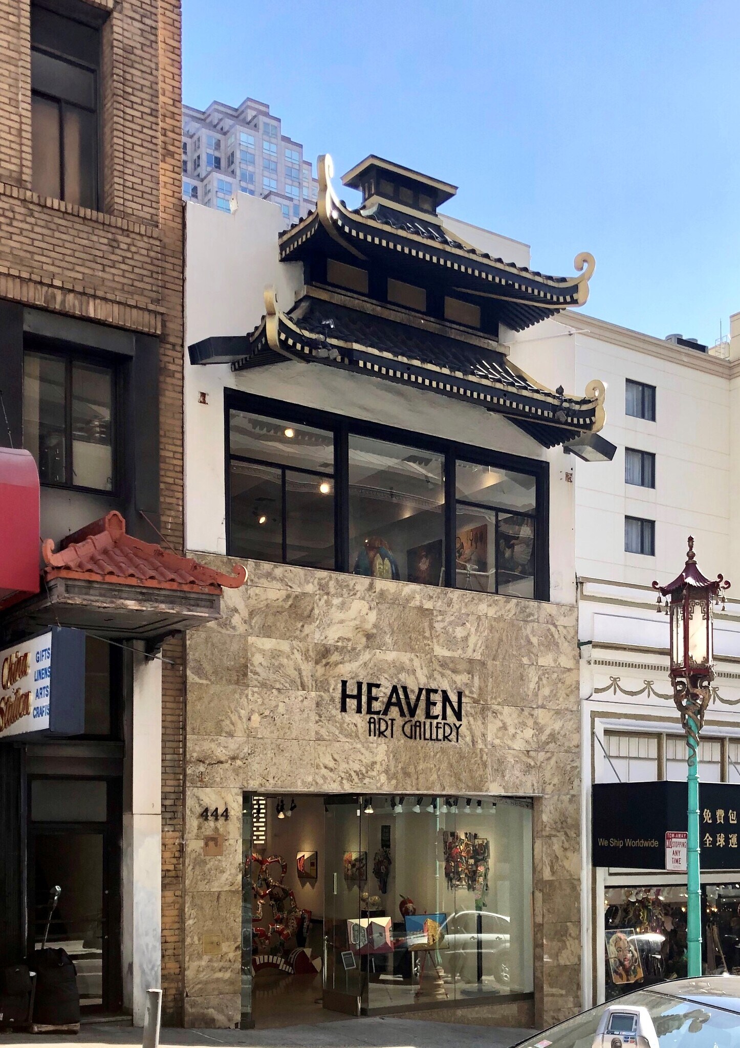 Avison Young is pleased to present a special offering for a one of a kind free standing retail building in San Francisco's' famed Chinatown. The building is located just 1/4 block inside the main Grant Avenue entrance to Chinatown. The building measures approximately 3,500 square feet and has alley access in the rear of the property for easy delivery and shipping. The structure has a marble exterior and a unique Asian architectural facade. This highly improved building which was most recently leased to Heaven Art Gallery. This is the first time in 50 years that the property has been offered for sale. This is considered a rare opportunity to find such a high quality “jewel box” of a building in the heart of San Francisco.