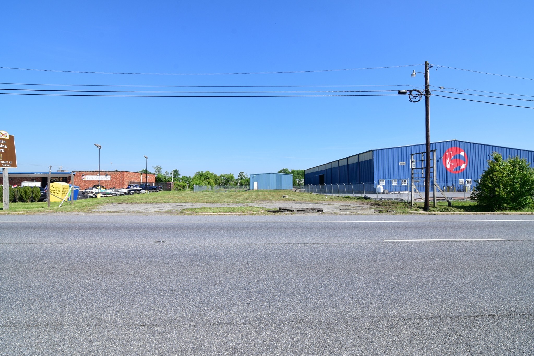 Clear lot located in between 84 Lumber and Lux Auto Sales. Near signalized intersection of Demarr Road and Route 301 (Crain Highway) 38,612 VPD