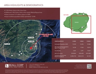 Newly developed commercial pad site for lease at the entrance to Hokulei Village Shopping Center, strategically positioned for high visibility from Costco and Home Depot traffic. Hokulei Village Lot J-2 offers easy accessibility from Lihue Airport (2.7 miles) and is just 1.6 miles from downtown Lihue, Kauai's main business district. The property, adjacent to a high-quality shopping center with anchor tenants Safeway and Petco, is open to negotiation on lease terms depending on the user. The location caters to a diverse mix of affluent local residents and draws tourists due to its convenient location off Kaumualii Highway—a major island thoroughfare. Don't miss this prime opportunity for a new build at this prime location in Hokulei Village.