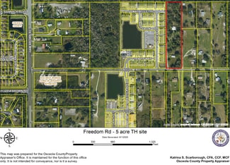 New apartment configuration w/ 36 units! Site Development Plan approved by Osceola County, engineering CAD plans available, SFWMD ERP issued. Water and sewer extended down Freedom Rd, no lift station or force main required for sanitary. Engineering, soil tests, environmental tests completed and available. Located off highly desirable Ham Brown Rd. Freedom Road upgraded with curbs, gutters, and sidewalks. Existing structures being demo’d.