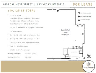 Craig Corporate Park is located just North of E. Craig Road & East of N. Nellis Boulevard, in the North Las Vegas submarket. Craig Corporate Park consists of five (5) free-standing, concrete tilt up buildings. These industrial buildings can be easily accessed from the I-15 via the Craig Road & Lamb Boulevard interchanges and is in close proximity to the I -15 & I-215 freeways, the Las Vegas Strip, and Harry Reid International Airport.