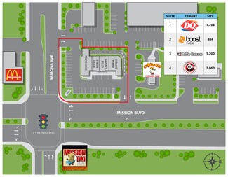 Former Boost Mobile space, great condition, located in a signalized intersection (Mission and Ramona) in a 4-unit plaza with Panda Express, Dairy Queens and Little Caesar's Pizza