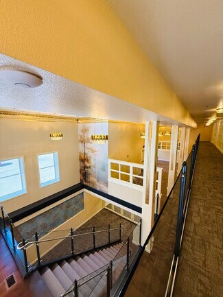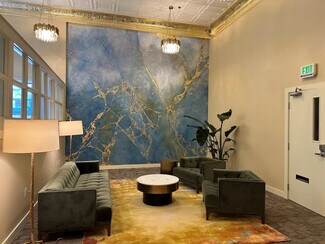 Upstairs, the mezzanine offers five exclusive glass-walled suites that overlook the vibrant lobby below, creating a dynamic blend of privacy and openness. Both the main level and mezzanine share thoughtfully designed common areas, including a fully remodeled kitchen equipped with a full-size refrigerator, stove, dishwasher, and microwave. An extended event space provides room for gatherings and collaboration, while a finished storage room offers practical convenience. The upgraded, modern restrooms feature sleek touch-less amenities, high-efficiency hand dryers, and sleek barn doors that hide efficient showers, elevating comfort and functionality throughout the space.