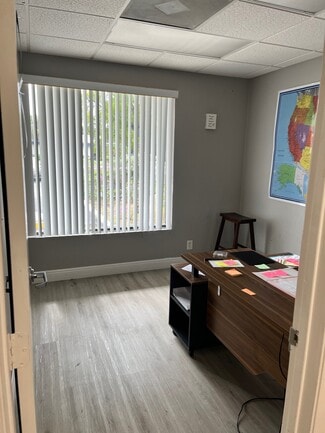Lowest rental rate in central Boca Raton! Plug & Play space- Ready for move in, Terrific layout with 2 private restrooms, full kitchen and large back yard area. Suite can be available all furnished as well. The suite has a very good floor plan- Reception area, 4 Private offices plus Conference room, Full kitchen, Break room area and private restrooms. Also- There is back yard area with a shed for tenant's use. Ground floor with walk in access. Plentiful parking. Furniture can be made available for use. Perfect suite for any professional use, Small call center, Corporate office, Medical(Plumbing is in the suite), Attorney, CPA Etc.