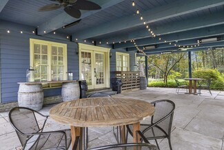 Welcome to Elmrock Inn, an elegant boutique estate in Stone Ridge, where 19th-century Dutch Colonial architecture meets modern country elegance. Set on five acres framed by towering Locust trees, this historic brick estate has long been a sought-after destination for weddings, private events, and unforgettable Hudson Valley getaways. Inside, soaring ceilings, antique-inspired furnishings, and a welcoming great room and grand dining hall with fireplace flow seamlessly. Head upstairs to a second-story bar lounge and expansive deck overlooking the grounds. Below, the bluestone patio under the elevated deck, organic herb gardens, and outdoor firepit create the perfect backdrop for gatherings or quiet retreat. The expansive property lends itself perfectly for badminton and frisbee. Five beautifully appointed suites in the main house feature private baths and luxurious details. On the main level there are two large suites and a separate office, and upstairs are three more suites and a storage closet. The property also includes ample parking and a professional-grade kitchen, ideal for both intimate breakfasts and large-scale catering. Completing the compound is a picturesque post-and-beam guest cottage, equally suited as an owner's residence, artist's studio, or rental opportunity. Its rustic craftsmanship, open floor plan, exposed beams, and abundant light highlight the region's timeless character, with an upstairs suite adding flexibility. Just under two hours from New York City and nestled near Mohonk, Minnewaska, and Stone Ridge, Elmrock Inn offers both lifestyle and income potential: keep it as a thriving bed-and-breakfast, enjoy it as a grand private estate, or reimagine it as a creative retreat or Airbnb. Impeccably maintained and steeped in Catskill charm, this turn-key boutique farmhouse compound is ready for its next chapter. Property consists of 2 buildings: 4494 Route 209, Marbletown (69.4.-1-1.200) 4496 Route 209, Route 209, Rochester (69.4-2-1.320) A 3D Walkthrough Tour is available in the digital Lookbook or by request.