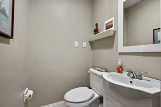 Prime Commercial Office/Warehouse/Retail Space in Mt. Lebanon with C2 Zoning. 850 sq.’ of fully furnished main level office space. Waiting area, main work/conference area, private office with separate bathroom, kitchenette and two bathrooms. Parking on main level for up to 6 cars stacked. Additional parking around back on left. Shared driveway leads to parking lot in rear with room for 6+ cars on left behind this building. Lower-level space is currently an 850 sq.’ four car garage with additional storage area, toilet/sink, and furnace/utility room. Garage door is 8’ and the ceiling height is 10’. This space could be converted to more office space if warehouse/garage is not needed. C2 Zoning allows for a long list of Uses by Right and Conditional Uses attached.