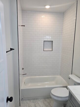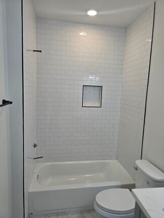 Discover the perfect blend of style and functionality in this brand-new 2-bedroom, 2.5-bathroom unit Fourplex. Each residence boasts a striking "Modern Farmhouse" exterior with bold black accents that set the tone for the high-end finishes found within. The open-concept living area features durable wide-plank flooring and soaring ceilings, anchored by a gourmet kitchen equipped with shaker-style cabinetry, sleek quartz countertops, and a massive waterfall island—perfect for entertaining. The thoughtful layout includes a convenient half-bath on the main level, while the upper floor offers spacious bedrooms with ample natural light. Retreat to the primary suite featuring a spa-like bathroom with designer floor-to-ceiling tile and matte black hardware. Located in a burgeoning neighborhood, this property offers the turnkey lifestyle you’ve been searching for.