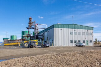 Tank Farm located in Aldersyde Industrial Park, Rural Foothills County Formerly utilized as bio diesel plant and recently as pilot plant for conversion of wood waste into diesel 10 permitted storage tanks with combined capacity of 1.7 M litres 2.45 Acre site with 7,200 SF industrial building with offices/shop; 1,700 SF partially developed mezzanine Corner site with paved access, high power, fully fenced and gravelled Taxes - $51,017.00 (2024