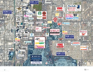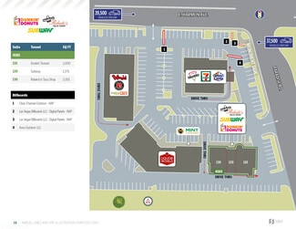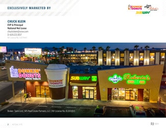 The property is a generational asset located just 1.2 miles from the world-famous Las Vegas Strip. It boasts an iconic location at the hard corner of Paradise and E Harmon, which experiences a high traffic count of 64,500 vehicles per day. The tenant roster includes well-known brands such as Dunkin' Donuts, Subway, and Roberto’s, attracting a broad customer base with their high-profile, daily-use offerings. The property is 100% occupied with NNN leases, providing stable historical occupancy, expense pass-throughs for ease of management, and minimal expense slippage. Situated in a dense resort corridor with over 2,500 hotel rooms within 0.3 miles, it is also positioned in a strong population area with 124,133 residents within a 3-mile radius and 392,211 residents within a 5-mile radius.