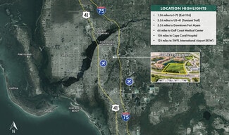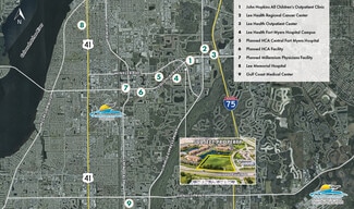 • Premier location and opportunity for a variety of commercial uses. • Ideal for hotel, ALF/ILF, medical/general office, surgery center, climate-controlled storage and retail/QSR uses. • Located 1 block from the new 53-acre Lee Health Colonial Campus, which is under construction and will include a 500-bed hospital, medical offices, surgery center and specialty clinics. • Located within 2± miles of numerous existing and planned medical hubs. • Excellent access and high visibility from Colonial Blvd. and Winkler Ave. • Ground leases, JV’s and build-to-suit opportunities are available. Please inquire for details.