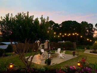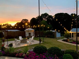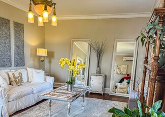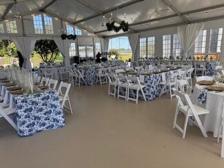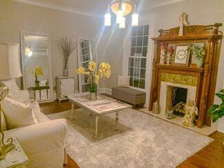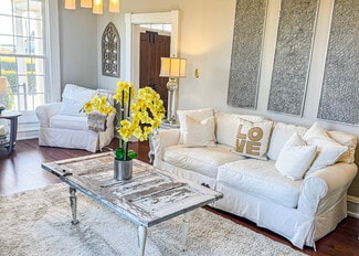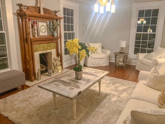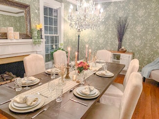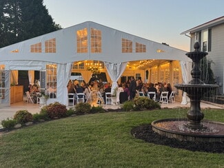 Originally constructed in 1859, the estate offers timeless architectural character while featuring extensive upgrades designed to support event operations. The grounds span more than seven beautifully landscaped acres, offering multiple indoor and outdoor event settings that accommodate gatherings of varying scales. The Magnolia Room provides an elegant environment for intimate events, while the formal dining and living rooms can be adapted for ceremonies, cocktail hours, or receptions. A 40' x 60' Grand Champ tent expands capacity for large weddings and celebrations, creating a seamless indoor-outdoor flow.